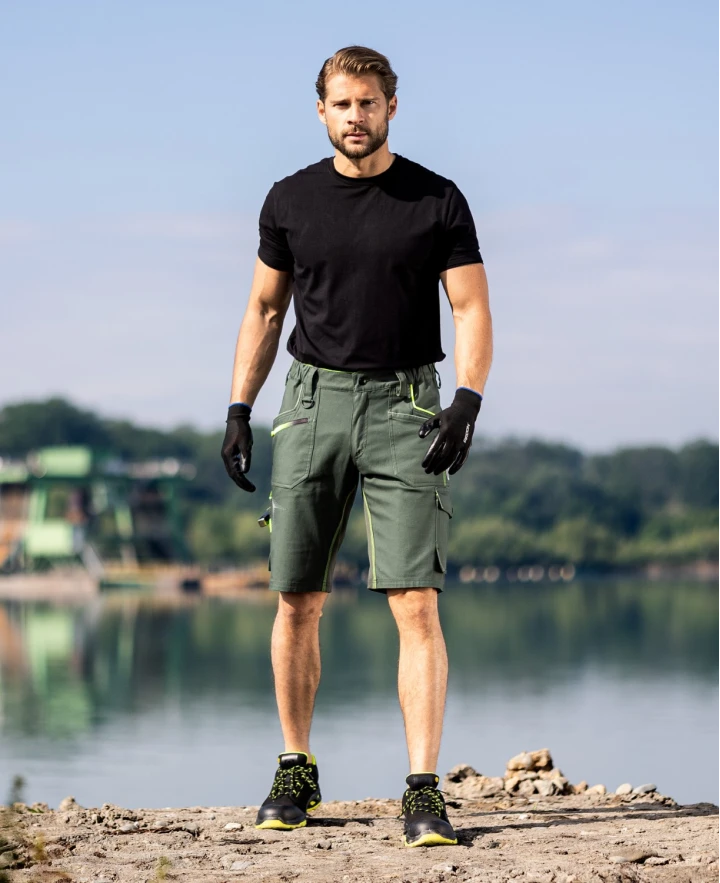 kraťasy jsou vybaveny pružným pasovým límcem spolu se skrytým zadním dvojitým poutkem pro pohodlné usazení opasku, vnitřní protiskluzovou páskou, D kroužkem na karabinu, 2 průhmatovými kapsami, 1 přední zipovou kapsou, 1 přední nářaďovou kapsou se širokým poutkem