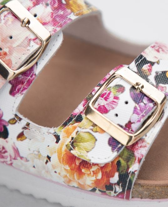 - dámský korkový nazouvák s podešví zvýšenou v patní části - kožený svršek s květinovým potiskem - materiál: kůže/PU - podešev: korek/EVA pěna - velikosti: 35-42