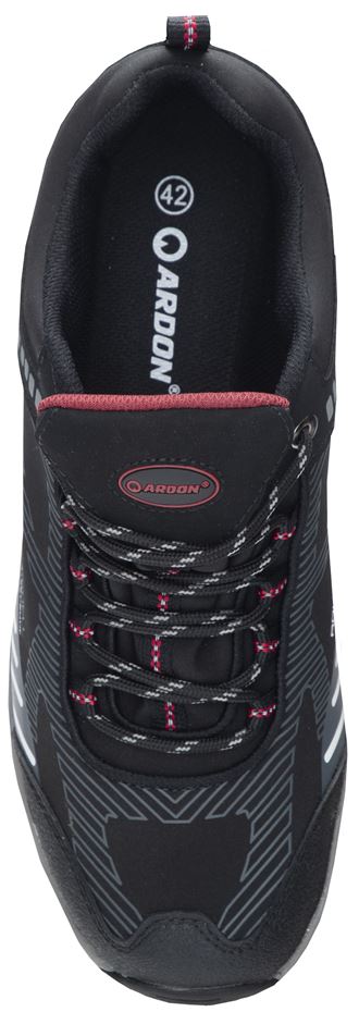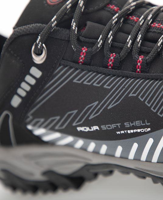 Softshellová obuv s reflexními potisky. Svršek z materiálu softshell s voděodolnou membránou, špice a patní část zesílena vrstvou polyuretanu.