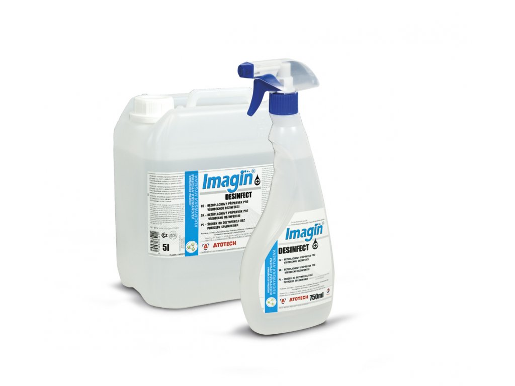 Imagin DESINFECT je dezinfekční přípravek určený na všeobecnou bezoplachovou dezinfekci. Tento prostředek je na alkoholové bázi. Je to rychlá a účinná koncová dezinfekce. Mycí prostředek je vhodný pro dezinfekci předmětů a zařízení včetně ploch přicházejících do styku s potravinami, např. pracovní plochy, transportní a podávací systémy, prkénka, řeznické špalky nebo pro dezinfekci aplikačních sond vpichových teploměrů či solárií.