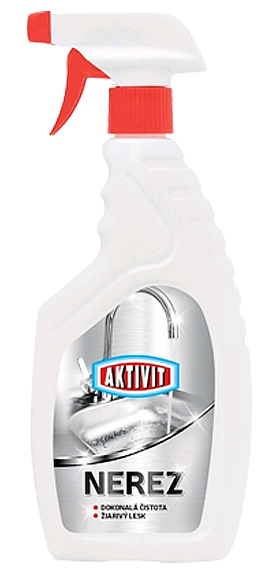 Čistí, leští, ošetřuje a dlouhodobě chrání nerezové povrchy v kuchyních, koupelnách atd. Odstraňuje skvrny od zaschlých kapek vody, mastnotu a jiné nečistoty, přičemž zabraňuje vytváření vápenatých usazenin, obnovuje lesk a dodává ochranu vyčištěným plochám. AKTIVIT na nerez je určený pro pravidelnou údržbu nerezových povrchů, které při opakovaném používání přípravku zůstávají déle čisté a ulehčují odstraňování špíny a usazenin.