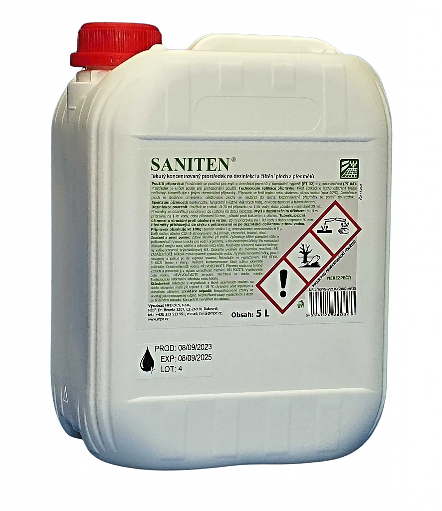 Saniten je přípravek (typ PT2) pro dezinfekci ploch a povrchů ve zdravotnictví a komunální sféře a v pro dezinfekci v potravinářství (PT4) na bázi aktivního kyslíku a kationaktivního tenzidu