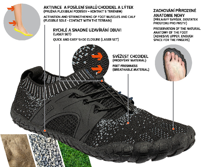 Tato obuv imituje chůzi naboso...cítíte se v ní volně, pohodlně, téměř jako bosí, ale přesto jsou vaše chodidla chráněna.