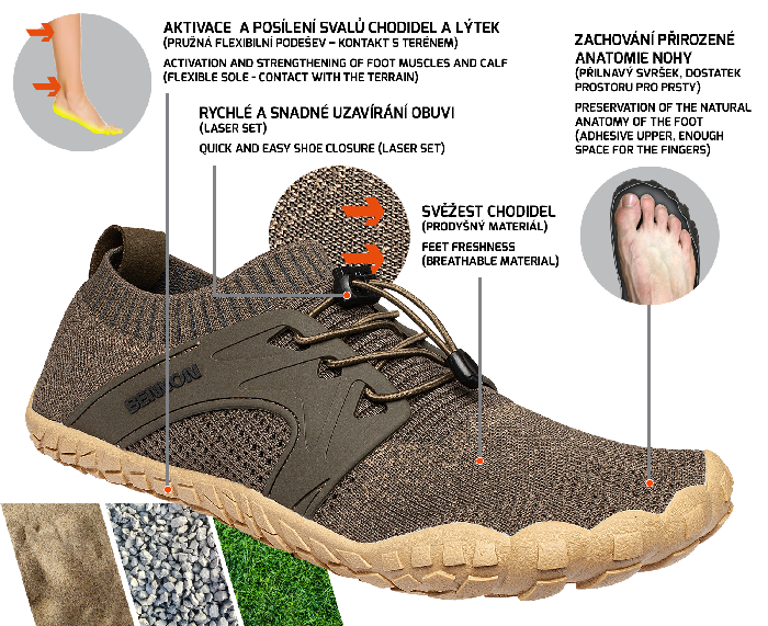 Tato obuv imituje chůzi naboso...cítíte se v ní volně, pohodlně, téměř jako bosí, ale přesto jsou vaše chodidla chráněna.