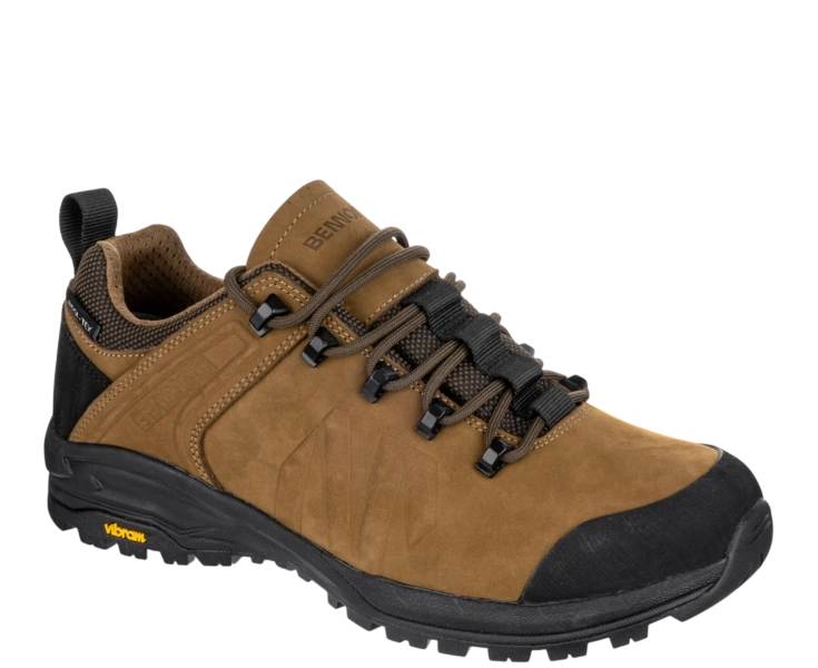 Celokožená trekingová obuv TERENNO LOW je ideální volbou pro ty, kteří hledají lehkou, univerzální a přitom stabilní obuv na treky i volnočasové aktivity. Vrchní část z kvalitní hovězinové nubukové usně s pryžovými prvky zajišťuje vysokou odolnost a ochranu před vlivy počasí i mechanickým opotřebením. Díky voděodolné membráně REGI-TEX® zůstávají vaše nohy v suchu i při dešti nebo vlhkém terénu. Vnitřní síťovaná podšívka MESH podporuje prodyšnost, zatímco stélka ABSORBA XTR efektivně tlumí nárazy a přináší pohodlí i při celodenním nošení. Podešev Vibram® S3018 s kombinací EVA a pryže poskytuje spolehlivou trakci a stabilitu na členitém povrchu, takže zvládnete každý krok s jistotou. Nízké provedení obuvi nabízí větší volnost kotníku a ideální flexibilitu pro rychlejší pohyb nebo každodenní výlety.