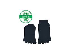 Ponožky v černé barvě jsou díky použitému materiálu bambus přirozeně antibakteriální a antialergické. Hladké ponožky jsou lesklé, velmi jemné a příjemné na dotyk. Prstové ponožky ve střední výšce nad kotník se hodí nejen do barefootové ale i fivefingers prstové obuvi.
