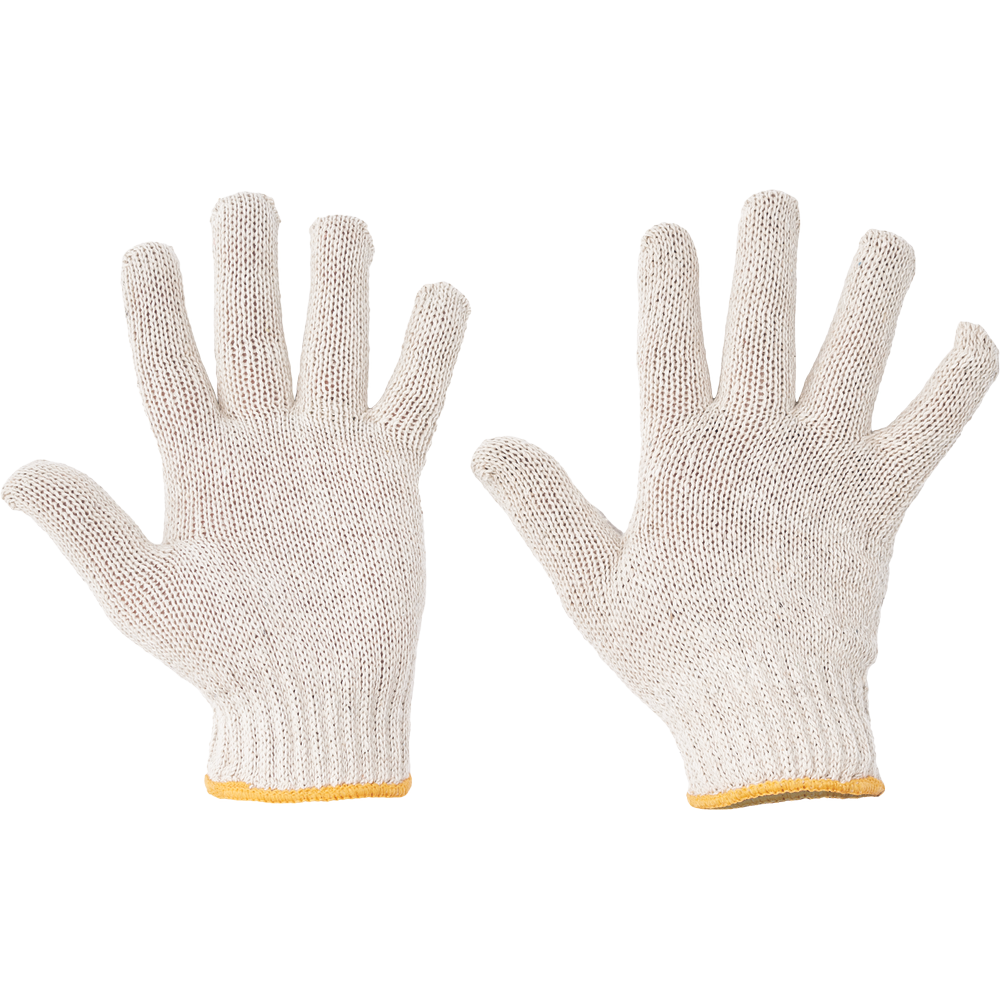 Pletené bezešvé rukavice s pružnou manžetou ze směsi polyester/bavlna.