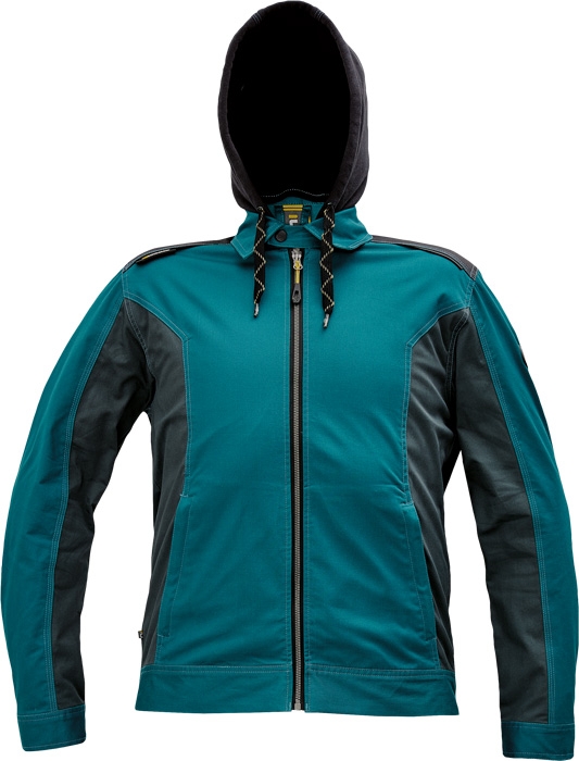pánská pracovní bunda; elastický inovativní materiál TRIFIBETEX; ergonomický střih; odnímatelná kapuce; zesílená oblast ramen z materiálu Oxford; 2 postranní kapsy; 1 vnitřní kapsa na telefon; reflektivní prvky v barevném odstínu Materiál: 100 % TRIFIBETEX