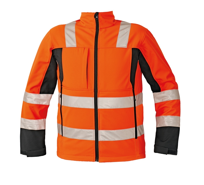 hi-vis softshellová bunda se dvěma postranními kapsami • náprsní kapsa na zip • stahování ve spodní části