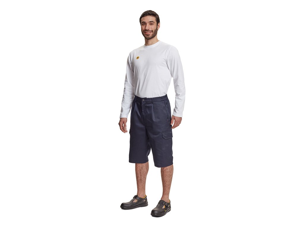 Pánské pracovní šortky s pružným pasem; 2 postranní kapsy; 2 stehenní kapsy s klopou na suchý zip; 1 zadní kapsa na suchý zip.
