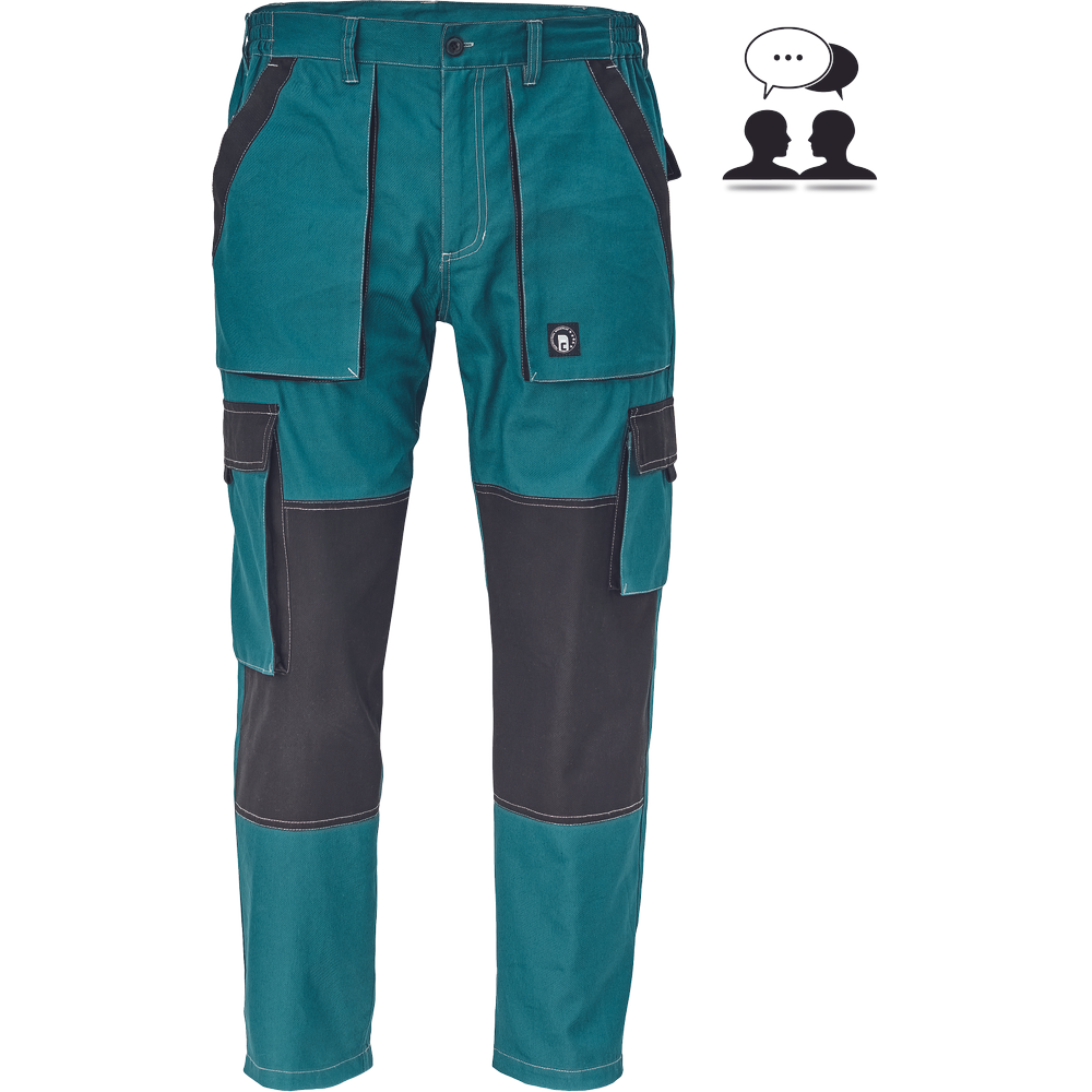 • dámské lehké pracovní kalhoty s elastickým pasem • 2 přední kapsy • 2 stehenní kapsy • 2 zadní kapsy • zesílení nohavic v oblasti kolen • nastavitelná délka nohavic