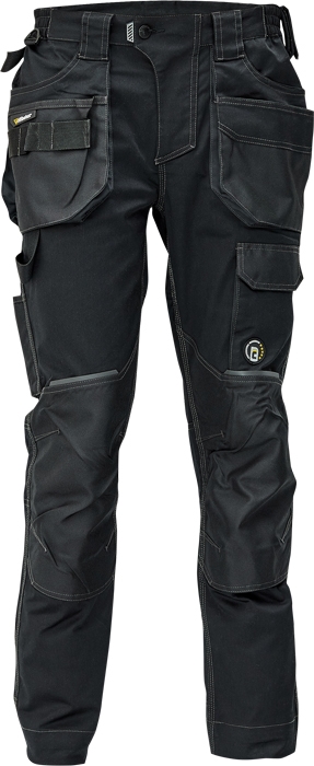 - pánské pracovní kalhoty; elastický inovativní materiál TRIFIBETEX; ergonomický střih; snížený pružný pas; odolné trojité prošití nohavic a sedu; zesílená kapsa na nákoleníky z materiálu Oxford; prostorné multifunkční přední kapsy s poutky na nářadí; 2 zadní kapsy s klopou zesílené Oxfordem; stehenní kapsa na telefon s klopou a zapínáním na suchý zip; kapsa na metr a nůž; poutko na kladivo; "D" kroužek; poutko nanářadí v pase; originální zpracování zapínání kalhot; reflektivní prvky v barevném odstínu; nastavitelná délka nohavic