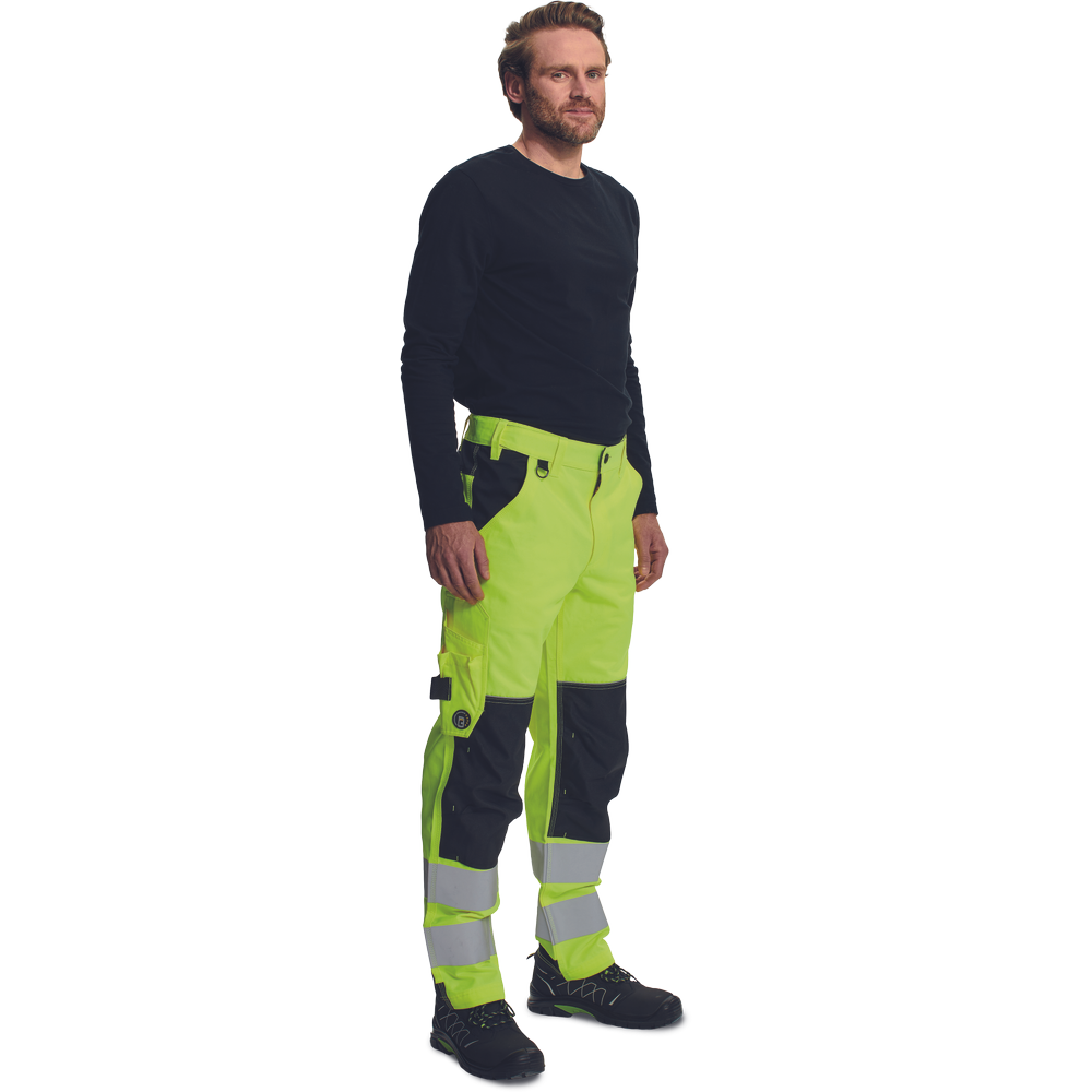 • pánské HI-VIS pracovní kalhoty s elastickým pasem • dvojice tištěných 7,5 cm reflexních pruhů • 5 funkčních kapes • 600D Oxford zesílení v oblasti kolen s možností vkládání kolenních výztuh • dekorativní prošití v kontrastní HI-VIS barvě • nastavitelné délka nohavic