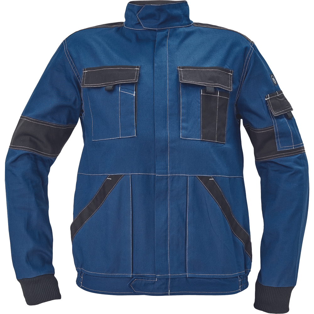 • pánská lehká pracovní bunda se zapínáním na zip krytým légou • 2 přední kapsy • 2 náprsní kapsy s klopou • 1 malá kapsa na levém rukávu • zesílení namáhaných míst loktů a ramen • pružné manžety rukávů a spodní obvod v pase