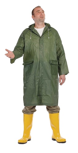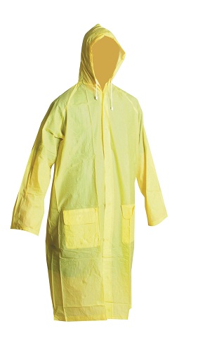 Voděodolný ochranný plášť s kapucí • odlehčený materiál z měkčeného PVC bez textilní mřížky • prodloužená délka zhruba pod kolena • všechny spojovací švy jsou zatavené • dvě přední kapsy kryté légami proti průniku vody • spodní část rukávů lze regulovat drukem • ventilace na zádech a v podpaží.