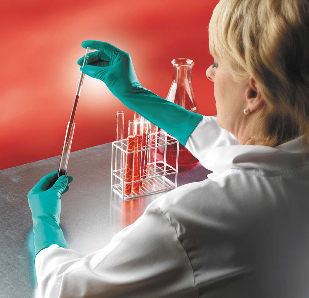 Zelené antistatické jednorázové rukavice ze 100% 0,12 mm silného nitrilu bez příměsí, s rolovaným okrajem, pudrované (A92-500) nebo nepudrované (A92-600 a A92-605), v celkových délkách 24 cm a 30 cm.