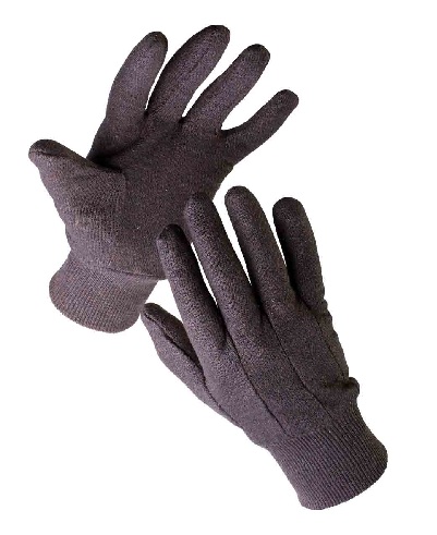Rukavice s pružným nápletem z hnědé bavlněné teplákoviny.