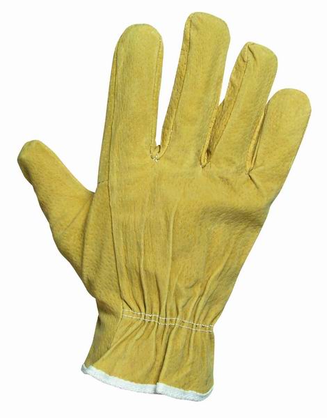 Žlutá štípaná vepřovice, bez podšívky, pruženka v zápěstí.