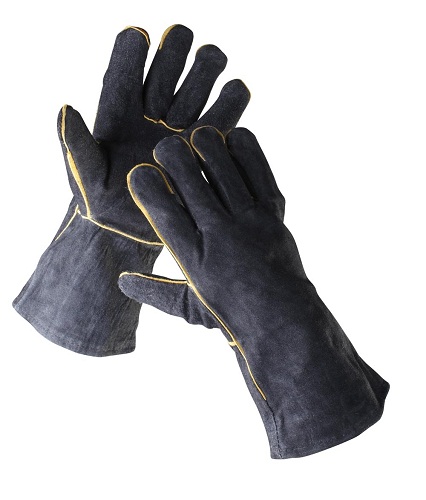 Celokožené rukavice z hovězí štípenky v délce 35 cm, s bavlněnou podšívkou a krytými švy. Certifikát: svářečské práce - typ A