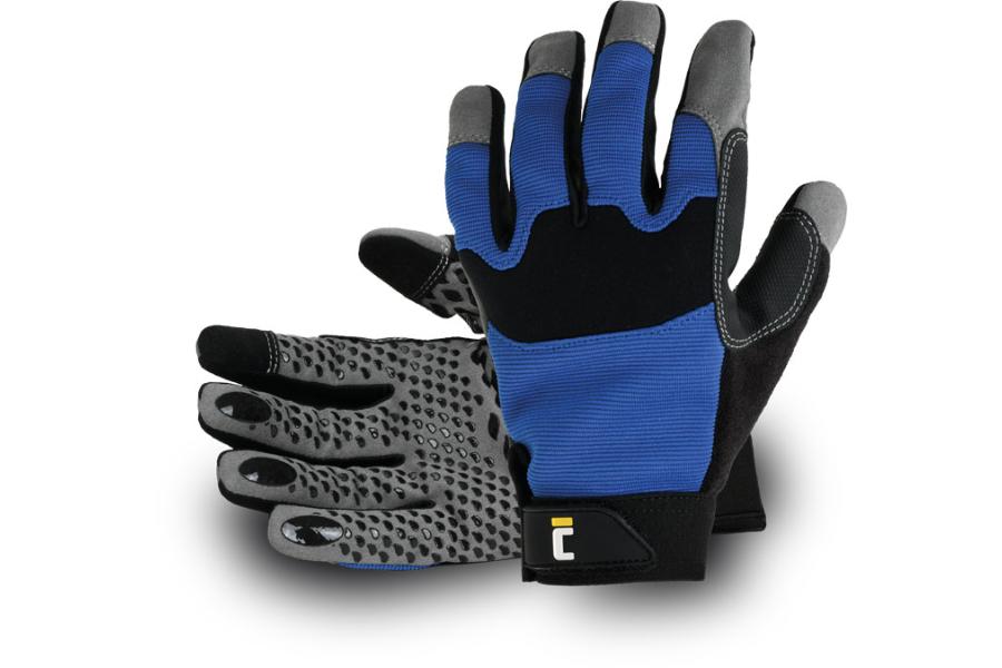 Protiskluzové PVC zesílení mezi ukazováčkem a palcem. Výborný úchop díky silikonovému máčení na dlani a prstech. Elastická manžeta na suchý zip