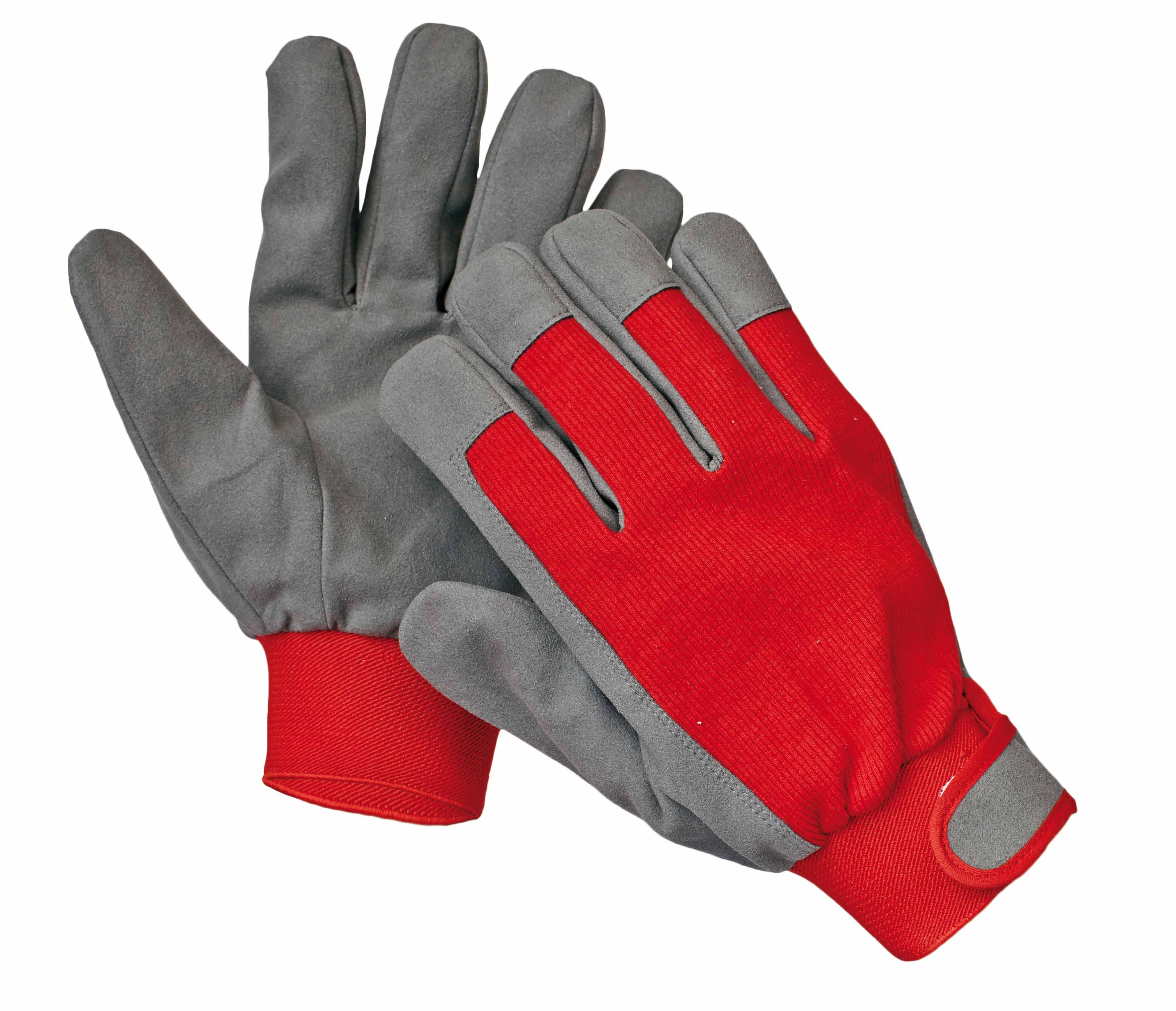 Rukavice z umělé kůže, hřbet bavlna / spandex, manžeta na suchý zip.