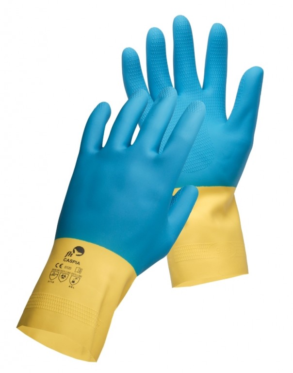 CASPIA pracovní rukavice latex/neopren - Přírodní latex máčený v neoprenu, vynikající úchopová schopnost, celková síla 0,70 mm, velurová úprava uvnitř, reliéfní povrch dlaně a prstů, velikosti 7 - 10