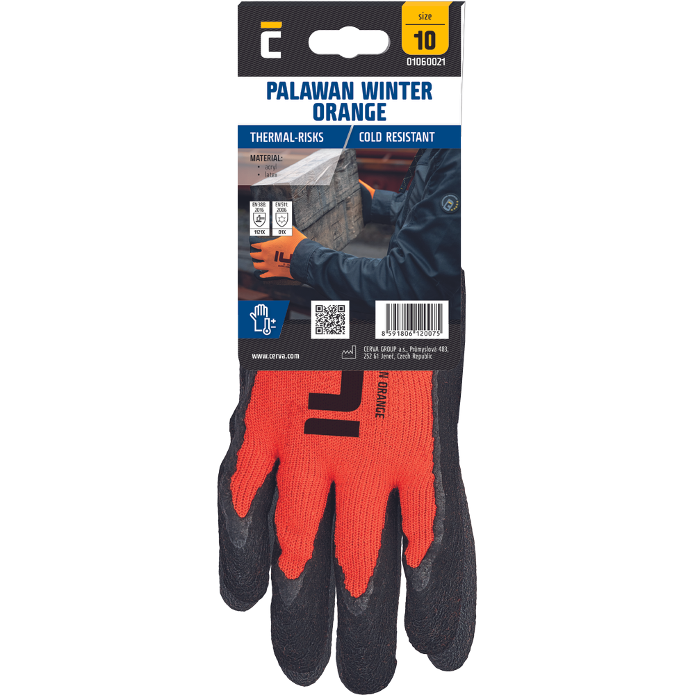 Zateplené bezešvé pletené rukavice ze syntetické příze s vrstvou mikroporézního paropropustného pěnového latexu v dlani a na prstech a pružným nápletem na zápěstí.