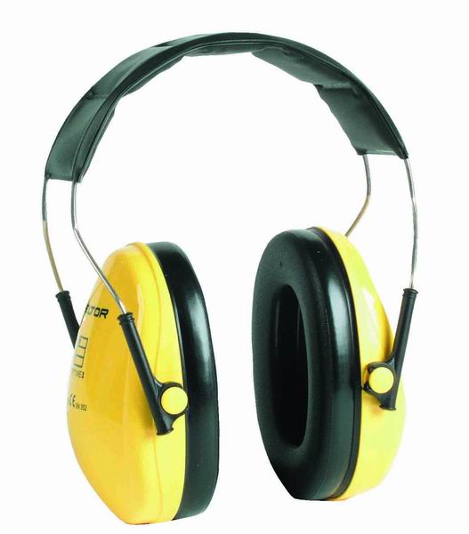 Lehký mušlový chránič sluchu pro použití v průmyslu, hlavový oblouk, těsnící polštářky plněné pěnou, hmotnost 150g. Žluté