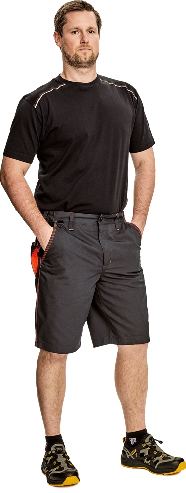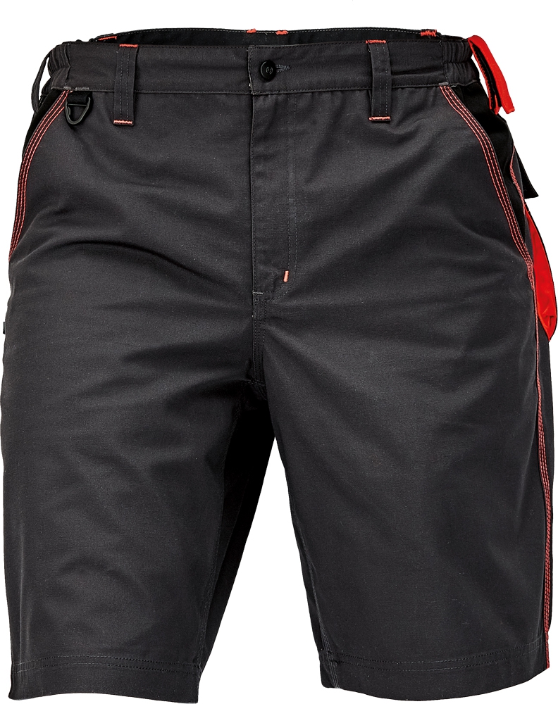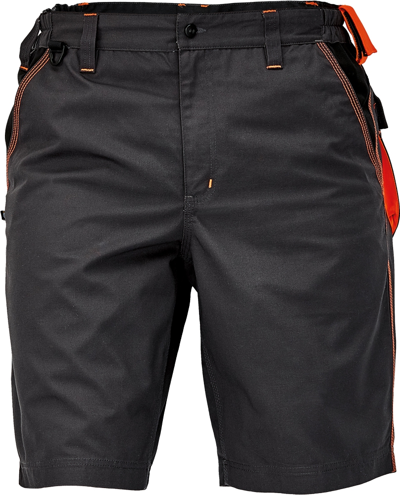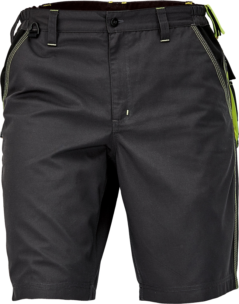 "• pánské pracovní šortky s elastickým pásem • 2 postranní kapsy a 2 kapsy s patkou na zadním díle • poutko na nářadí v kontrastní barvě • D kroužek pro přichycení identifikační karty • dekorativní prošití v kontrastní hi-vis barvě"