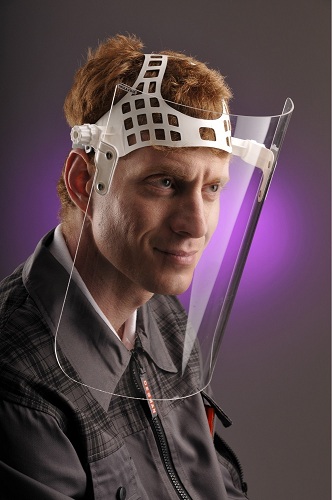 Ochranný štít o velikosti 330 x 290 mm z čirého PMMA tl. 2 mm je typem štítu s náhlavním nosičem. Určen k ochraně očí a obličeje proti nárazu pomalu letících částic s dopadovou energií max. 0,56 J. Umožňuje současné použití korekčních brýlí. Vyhovuje normě EN 166.