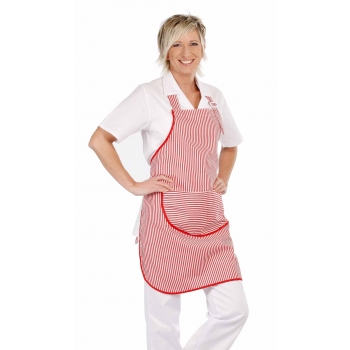 Pracovní zástěra s přední dělenou kapsou. Nastavitelná výška na plastovou sponu a uchycením na tkaloun.