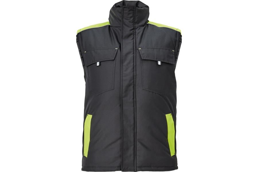 Pánská zimní vesta; zapínání na zip kryté légou na suchý zip; 2 boční kapsy, 2 náprsní kapsy na suchý zip; 1 vnitřní kapsa na mobilní telefon; reflexní prvky.