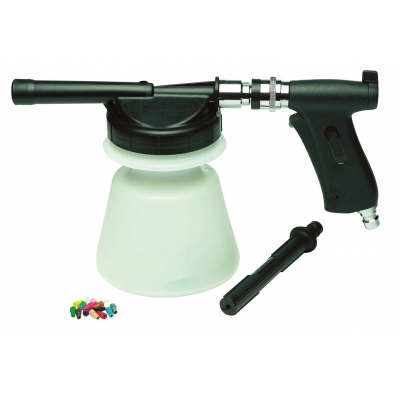 Průmyslové směšovací zařízení pro přímé dávkování čisticího roztoku ve formě řídké pěny, s pistolovou rukojetí a nádobkou na 1,4 l