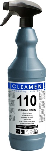 Prostředek je určen k mytí oken, sleněných ploch, výplní dveří, vitrín, stolních desek a všech typů zrcadel sprejovou metodou. Lze používat jako koncentrát na silné znečištění, nebo vodní roztok 250 až 500ml/l na slabé až střední znečištění, poté je třeba plochy setřít stěrkou a přeleštit mikrovláknem. Má dobré čistící, odmašťovací a leštící vlastnosti, je parfemovaný ovocnou vůní. Popis použití při sprejovém čištění oken: 1) Navlhčenou utěrkou umyjeme rám okna a ze skla odstraníme hrubé nečistoty. 2) Na rozmývák naneseme vhodně naředěný Cleamen 110 pomocí rozprašovače. 3) Pomocí rozmýváku, rozetřeme po čištěné ploše a necháme několik vteřin působit. 4) Stěrkou stáhneme znečištěný roztok. 5) Suchou utěrkou z mikrovlákna setřeme cestičky a kapky, případně přeleštíme šmouhy. pH koncentrátu: 8 Seznam nebezpečných látek a zásady bezpečnosti práce jsou součástí Bezpečnostního listu.