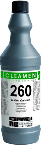 Prostředek, určený k mytí pivního a restrauračního skla, vhodný i do myček. Po umytí pivních sklenic přípravkem CLEAMEN 260 restaurační sklo, zůstává na pivu déle pěna a pivo si udrží říz. Obrovskou výhodou je neutrální pH, které zajišťuje dermální toleranci při ruční práci v roztoku. Navíc díky receptuře která neobsahuje agresivní odmašťovadla, nepoškozuje sklo při dlouhodobém strojním mytí. Vhodný i pro mytí jakýchkoliv pevných ploch oplachovou metodou. Doporučujeme na mytí křišťálových lamp a lustrů a všude tam, kde požadujete aby vyčištěné skleněné plochy zůstávaly dlouho čisté. Po umytí vždy oplachujte sklenice proudem pitné vody. Prostředek dávkujte v doporučeném poměru viz tabulka do vody, kde umýváte restraurační sklo nebo v poměrném množství dávkujte přímo do myček nebo na jejich dávkovací zařízení. pH koncentrátu : 8 Po naředění výrobku na méně než 30% roztoku, přípravek již nespadá do klasifikace nebezpečných chemických látek. Seznam nebezpečných látek a zásady bezpečnosti práce jsou součástí Bezpečnostního listu.