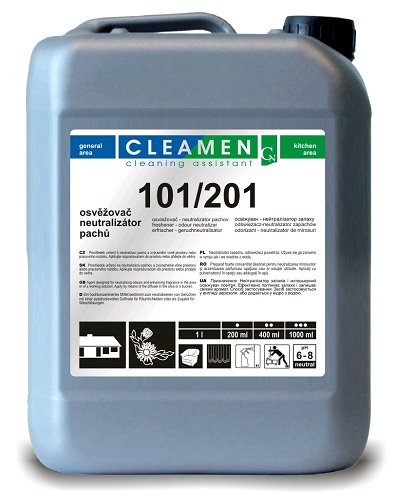 Neutralizátor pachů a interiérový osvěžovač. Účinně rozkládá pachy a zanechává svěží vůni ve stejné parfemaci jako Cleamen 100/200.