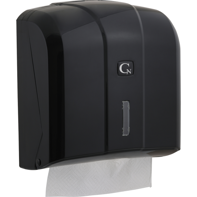 Nástěnný zásobník na papírové ručníky"ZZ" v rozměru 23x25 cm, případně univerzální i pro jiné rozměry a sklady. Vyroben je z černého plastu. Má elegantní vzhled a při malých rozměrech je schopen pojmout až 400 ks ručníků.
