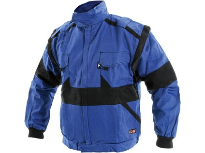 Pánská, odepínací rukávy do manžety, kryté zapínání, kapsa na mobil, pas do gumy. Prodloužena na výšku 194cm. kepr 100% bavlna