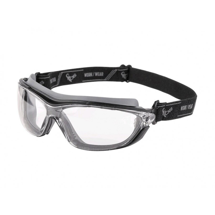 Uzavřené hybridní polykarbonátové brýle v moderním designu. Poskytují ochranu proti UV385. Ergonomická konstrukce zajišťuje neomezený výhled. Nastavitelná gumička pro možnost pohybu bez omezení. Vložka pro přilnavost k obličeji vyrobená z TPE pro snadné omytí nebo dezinfekci. Prémiový povrch, který splňuje dodatečné zkoušky EN 166 pro odolnost proti poškrábání (K) a zamlžení (N). Vhodné pro práci ve výškách a prašném prostředí.