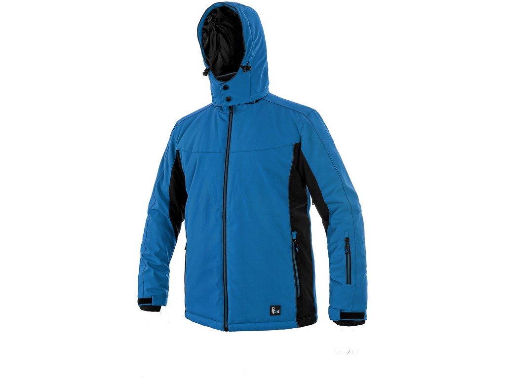 Pánská, zateplená softshellová bunda, odolná proti vodě a větru, větrání v podpaží, odnimatelná kapuce, regulovatelná manžeta na rukávech a pružná manžeta v rukávech, stahování v dolním okraji, černé reflexní výpustky, TPU membrána, odolnost materiálu proti průniku vody 10 000 mm mimo oblast švů, paropropustnost 3 000 g/m2/24 hod, podšívka je kombinací materiálů s fleecem, na levém spodním rukávu kapsička na zip, 2 spodní kapsy na zip, 1 vnitřní kapsa.