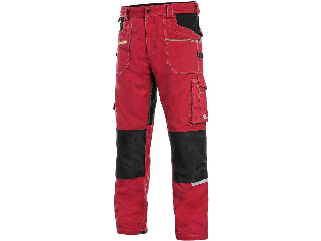 Kalhoty pánské CXS STRETCH, červeno-černé, reflexní doplňky, 98% bavlna 2% elastan, 250g/m2, vel. 46-64