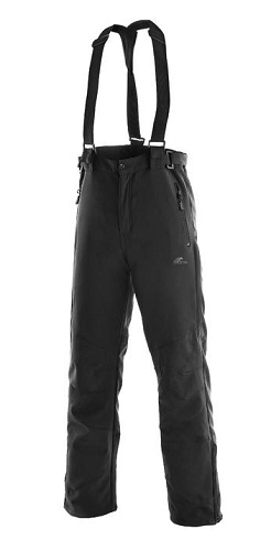 UNISEX softshell kalhoty podšité fleecem, odepínací kšandy, možnost utáhnutí v pase, zip dole na nohavici, vnitřní manžeta, větrání na stehně, TPU membrána, odolnost proti průniku vody 10 000mm mimo oblast švů, paropropustnost 3 000g/m2/24 hod.