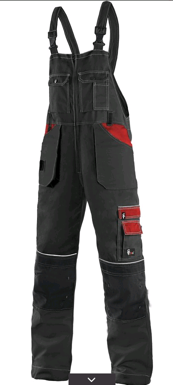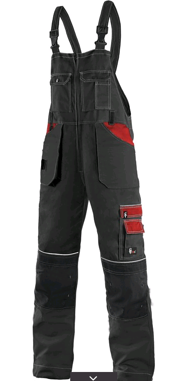 Pánské kalhoty s náprsenkou, náprsní kapsy s klopami, pas s poutky na opasek, vzadu do gumy, přední kapsy s poutky na nářadí, multifunkční kapsy na obou stranách, kolena zesílena 600D polyesterem s možností vložení kolenních výztuh, dvě zadní kapsy, jedna na suché zipy, šle s gumou vzadu, reflexní doplňky.