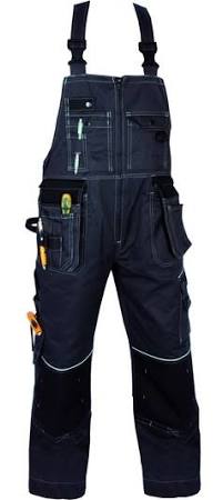 Kalhoty pánské s náprsenkou, ORION šedo-černé zdvojená kolena pro nákoleníky, zasunovací odnímatelné kapsy s poutky na nářadí, náprsenka s kapsami a odepínáním uprostřed, reflexní doplňky, kepr 60% bavlna 40% polyester 280g/m2
