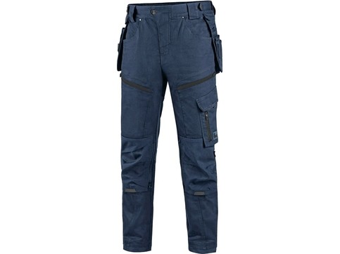 Pánské pracovní kalhoty moderního střihu slim-fit. Kombinace kvalitního směsového materiálu s elastanem a 4-way stretch materiálu v exponovaných místech umožňuje volný a pohodlný pohyb.