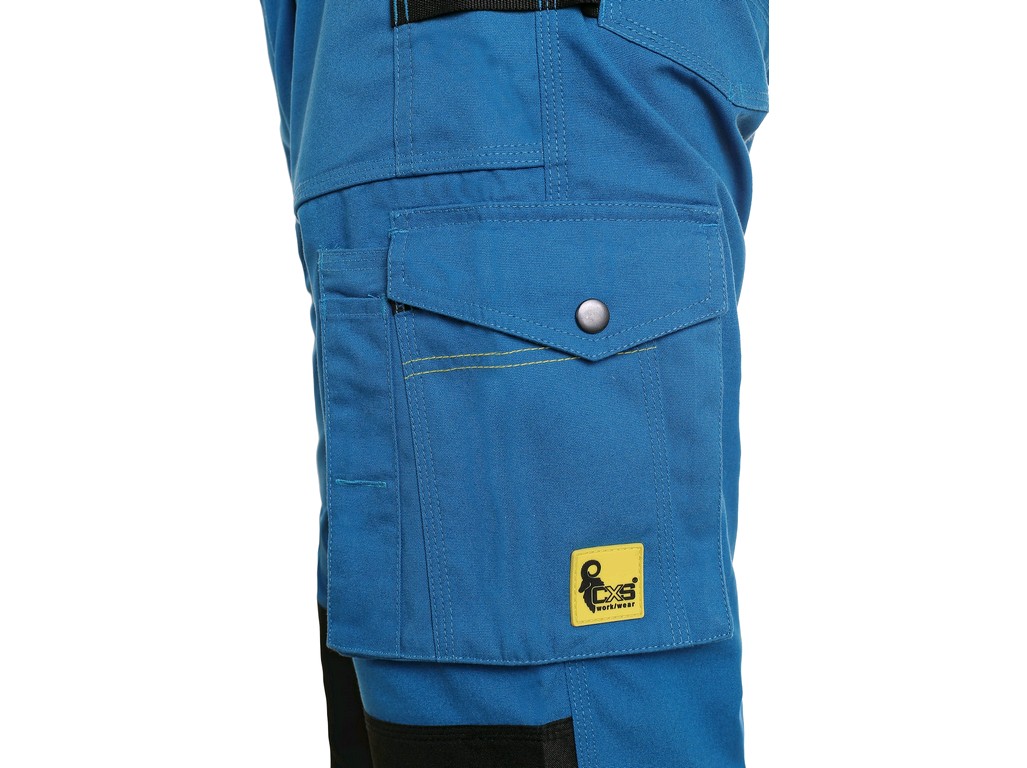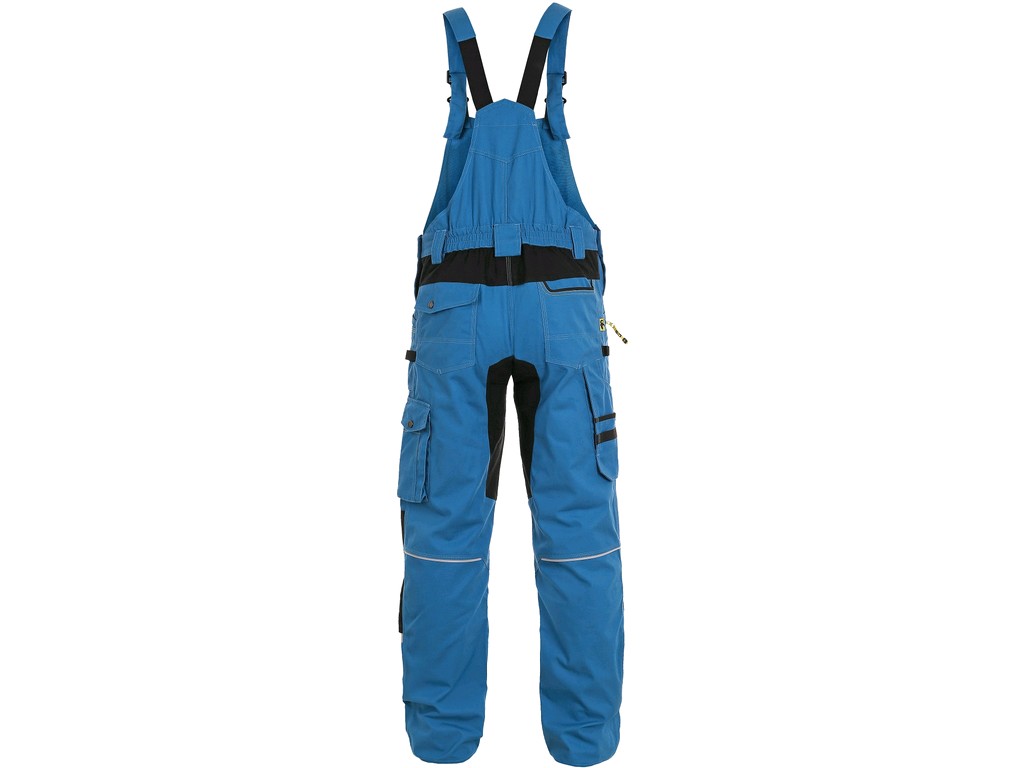 Pánské montérkové kalhoty s náprsenkou, strečová tkanina umožňující volný pohyb, náprsní kapsa s klopou, pas s poutky na opasek, přední kapsy s kapsou na zip, multifunkční kapsy na obou stranách, kolena zesílena 600D polyesterem s možností vložení kolenních výztuh, dvě zadní kapsy - jedna s klopou, zadní spodní lem nohavice vyztužen 600D polyesterem,šle s gumou vzadu, reflexní doplňky. Doporučené použití: strojírenství, stavebnictví, lehký průmysl, automobilový průmysl, logistika, skladová manipulace, spedice, autoservisy, údržba, montáže, zemědělství, zahrada, hobby.