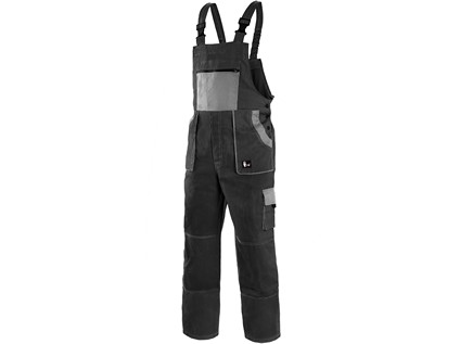 Pánské kalhoty s náprsenkou, zdvojená kolena, přední našité kapsy, náprsní kapsa na zip, boční kapsy na metr a na mobil, pas v zadní části do gumy.