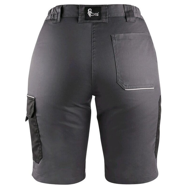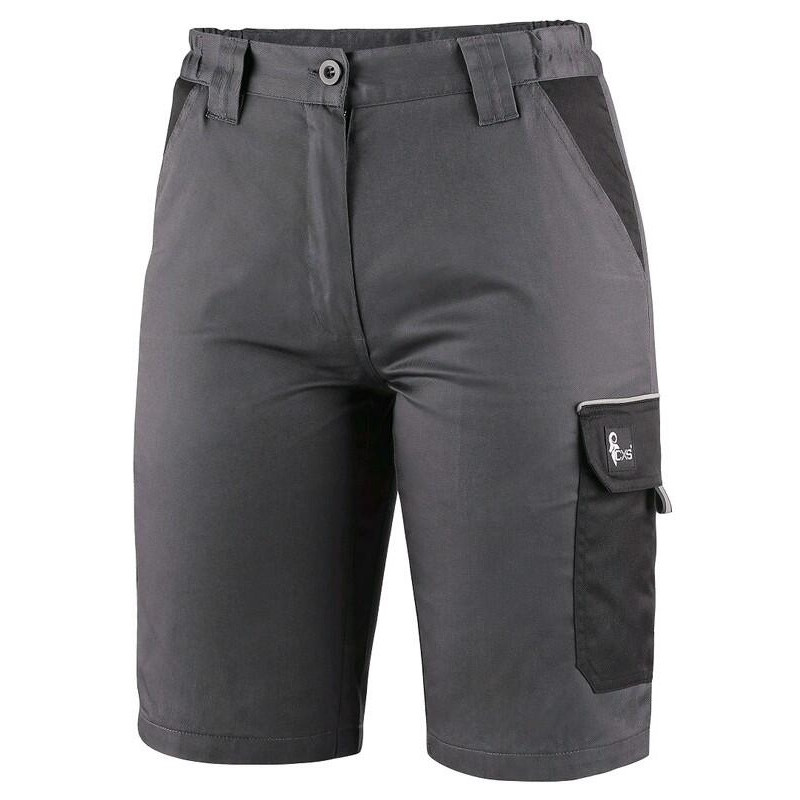 Dámské montérkové kraťasy z lehkého materiálu, pas s poutky na opasek a gumou v bocích, přední klínové kapsy, boční kapsa s klopou, kapsa na skládací/svinovací metr, zadní jednoduchá kapsa na pravé straně, reflexní doplňky. Doporučené použití: letní pracovní oděv, stavebnictví, strojírenství, lehký průmysl, automobilový průmysl, logistika, skladová manipulace, spedice, autoservisy, údržba, montáže, zemědělství, učiliště, zahrada, hobby.