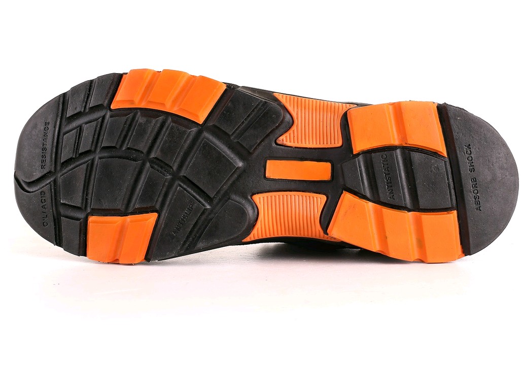 Sandál, kombinovaný, perforovaný, s ocelovou špicí, materiál: svršek z broušené kůže kombinovaný s prodyšným textilním materiálem, textilní podšívka, gumová, protiskluzová, olejivzdorná, antistatická podešev. Materiál: kombinace broušené kůže s prodyšnou textilií, pryžová podešev