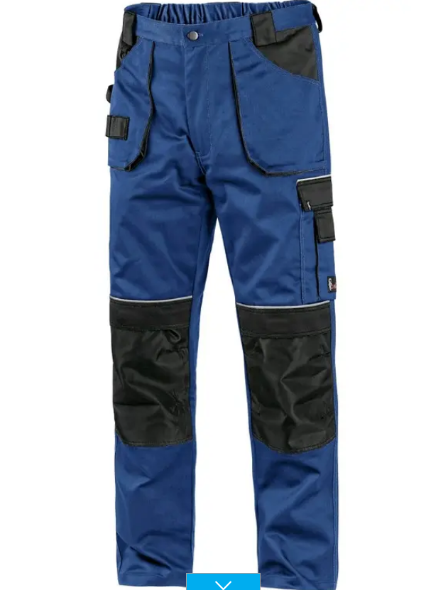 Pánské kalhoty do pasu s poutky na opasek, zdvojená kolena s možností vložení kolenních výztuh, boční multifunkční kapsy, klínové přední kapsy a našité kapsy s poutky na nářadí, reflexní doplňky.